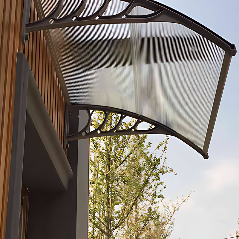 הגגון עשוי מזרועות פוליפרופילן (PP) קשיח ותומכי אלומיניום בצבעים שחור או לבן חיפוי פוליקרבונט שקוף-חלבי 5 מ"מ
