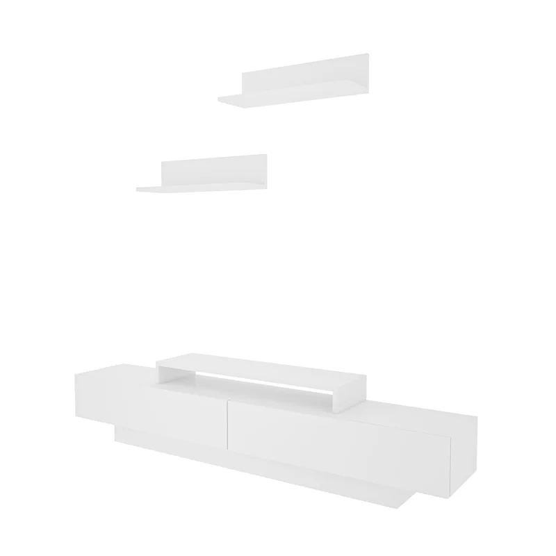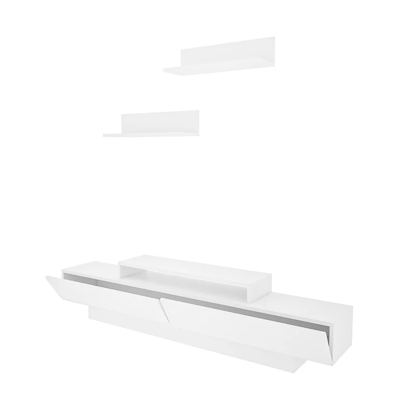 מזנון טלוויזיה מעוצב שישדרג לכם את הסלון בשילוב שני מדפי תליה תואמים. מתאים להנחת הטלוויזיה ולאחסון כל דבר שתחפצו בסלון או בחדר המגורים.