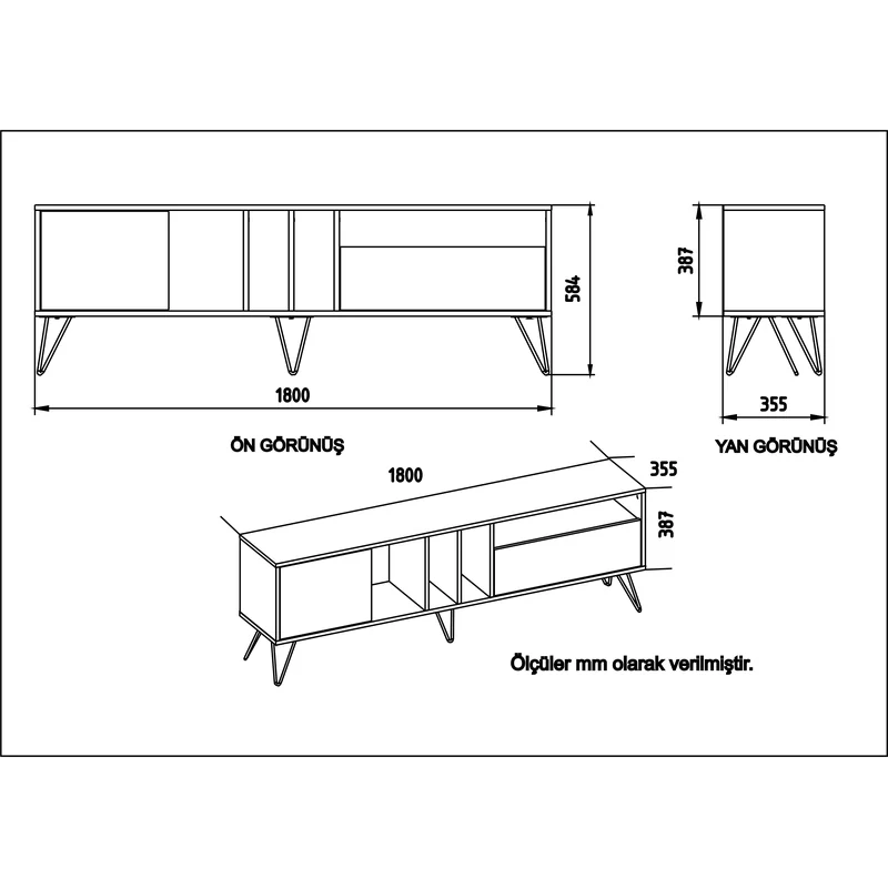 מזנון טלוויזיה מהמם שישדרג לכם את הסלון. מתאים לטלוויזיה ולאחסון כל דבר שתחפצו בסלון או בחדר המגורים. למזנון תא אחסון סגור ו-4 תאי אחסון פתוחים.