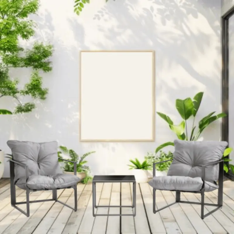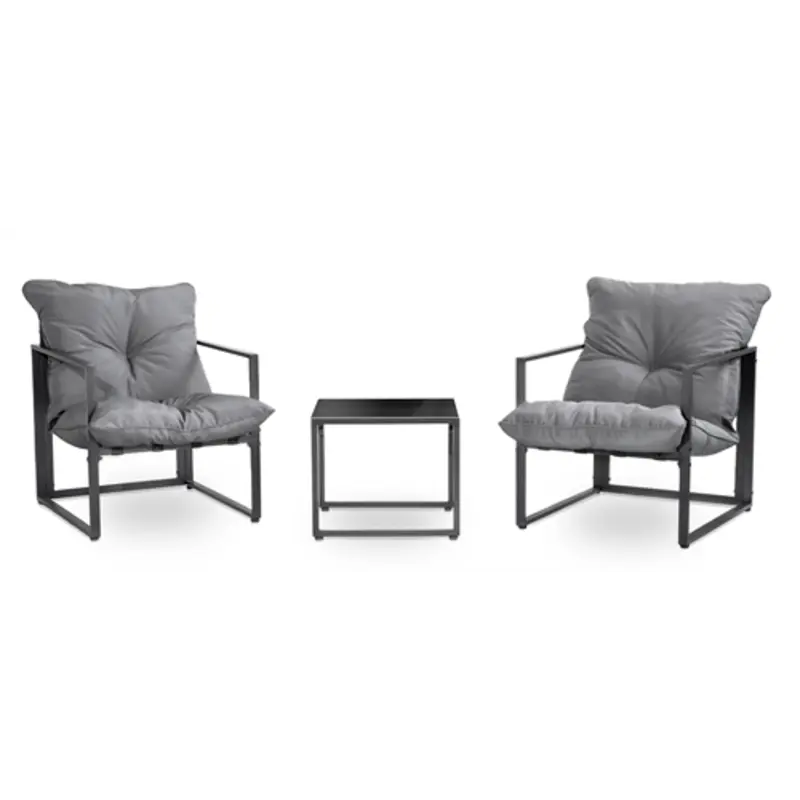 פינת ישיבה לגינה זוגית דגם סינגפור – סט קומפקטי ונוח הכולל זוג כיסאות מרופדים ושולחן זכוכית מרובע. מושלם כמערכת ישיבה לגינה / מרפסות קטנות ופינות אירוח אינטימיות, עם כריות איכותיות לנוחות מרבית.