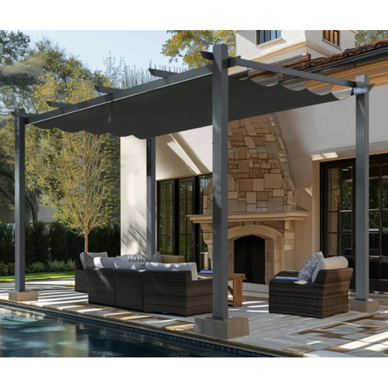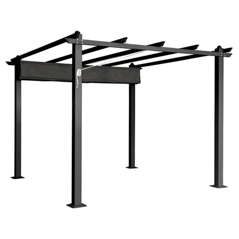 פרגולה מפוארת אלומיניום 3X3 דגם קיסר Garden Top – פרגולה איכותית העשויה מאלומיניום עמיד בגוון אפור כהה יוקרתי. מציעה פתרון מהיר ומרשים לכל גינה, עם בד קירוי חכם הכולל מנגנון פתיחה וסגירה, מתאימה לכל עונות השנה.