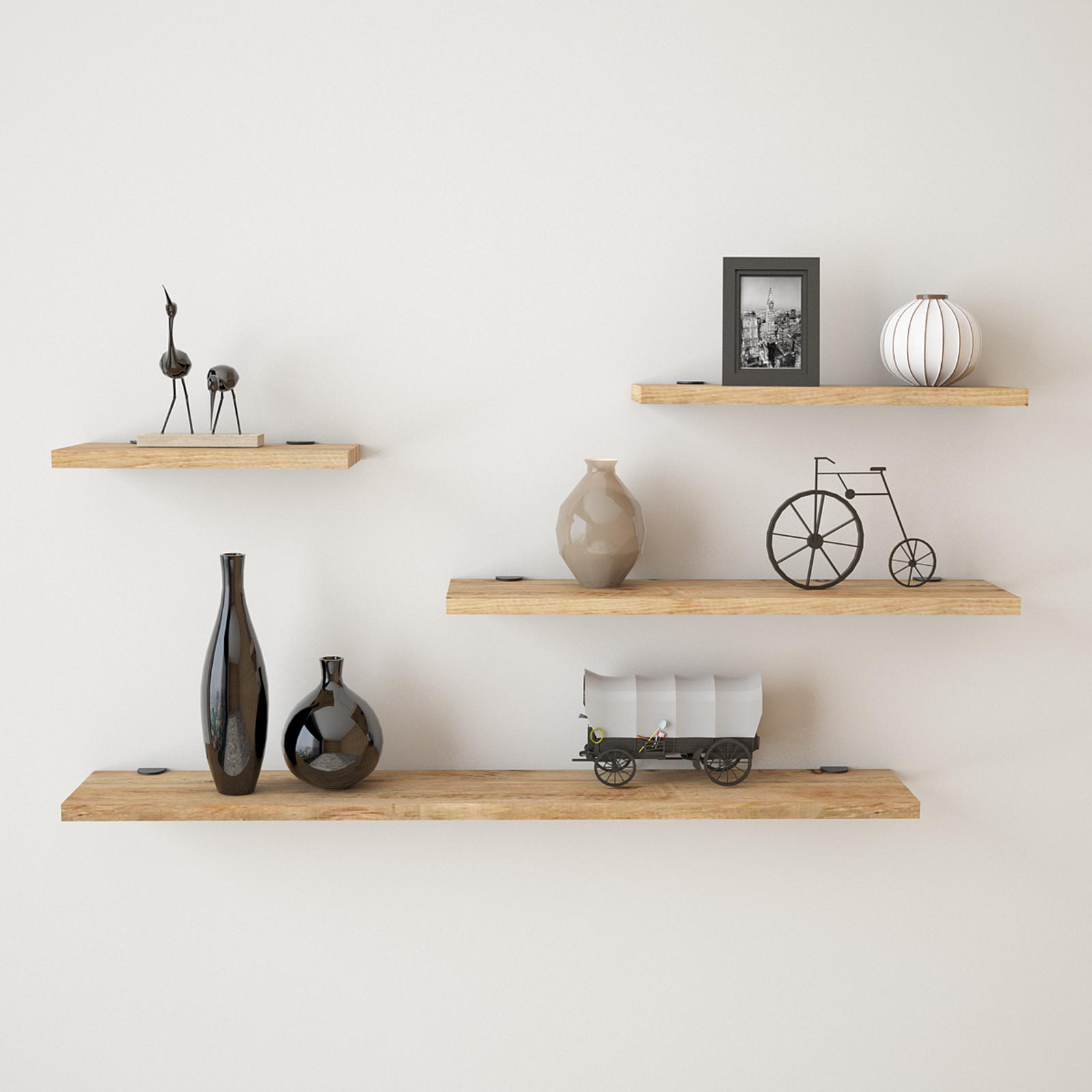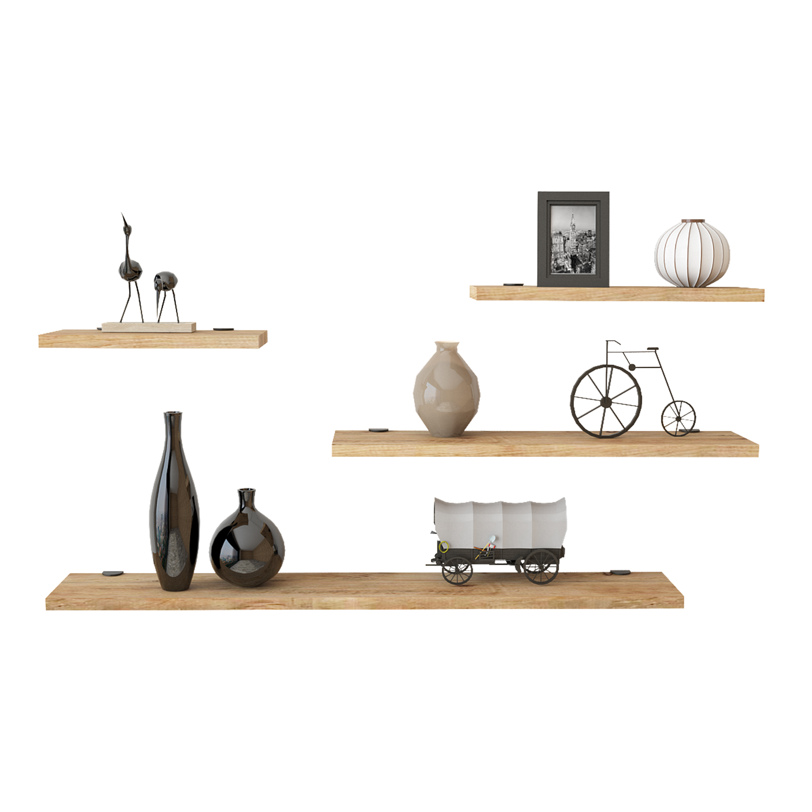 רביעיית מדפים צפים באורכים שונים לעיצוב חלל הבית. המדפים משתלבים נפלא בכל חדר במשרד או בבית, מהסלון דרך חדרי השינה.