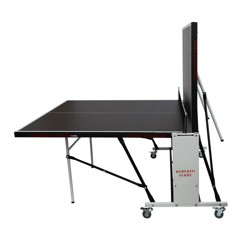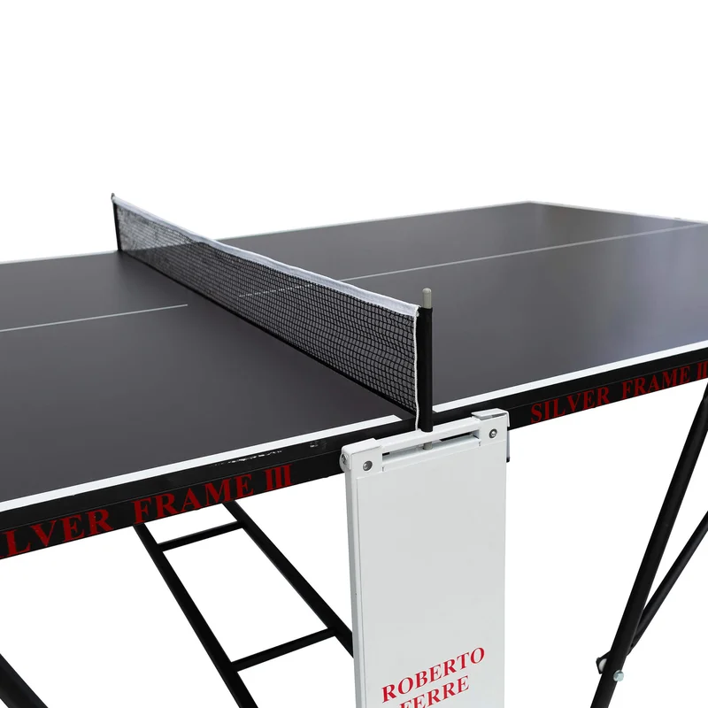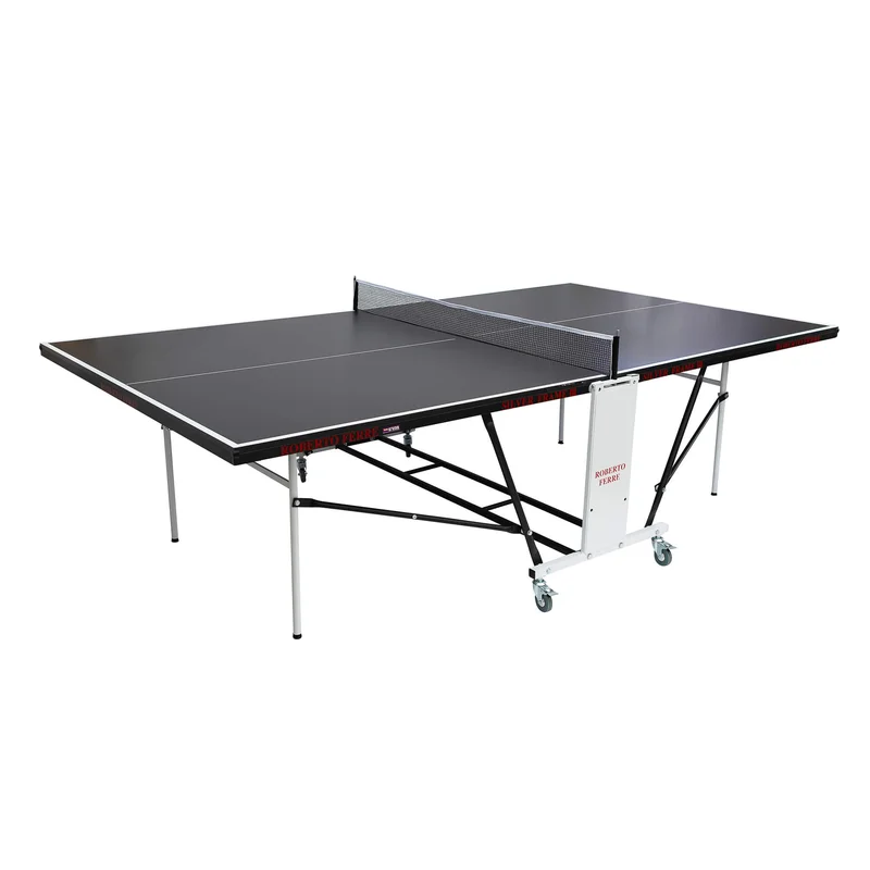 שולחן טניס פנים איכותי מבית Roberto Ferre -0 – פלטות עשויות עץ 18 מ"מ מסגרת מתכת 30 מ"מ היקפית, להגנה מלאה מפני פגיעות ונזקים יתרון! דפנות מתכת ללא פלסטיק בכלל, רגליות פילוס מובנות פלטות צבועות בתנור למניעת סינוור.