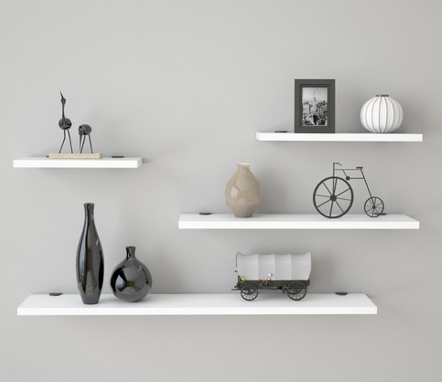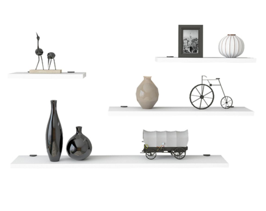 שלישיית מדפים צפים באורכים שונים לעיצוב חלל הבית. המדפים משתלבים נפלא בכל חדר במשרד או בבית, מהסלון דרך חדרי השינה.