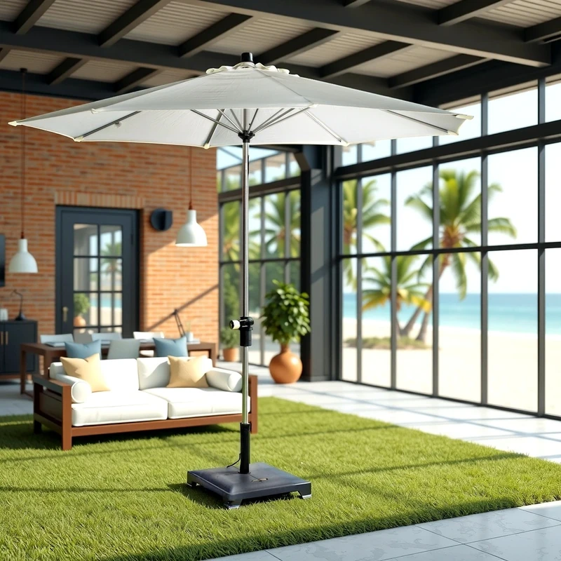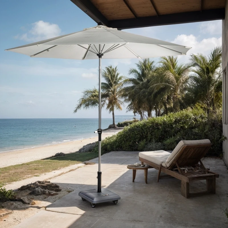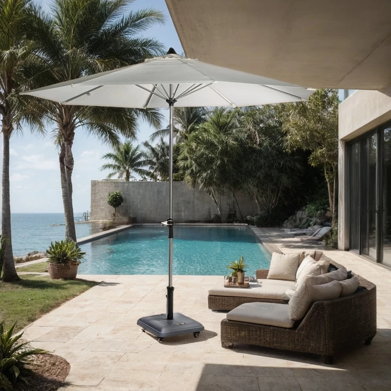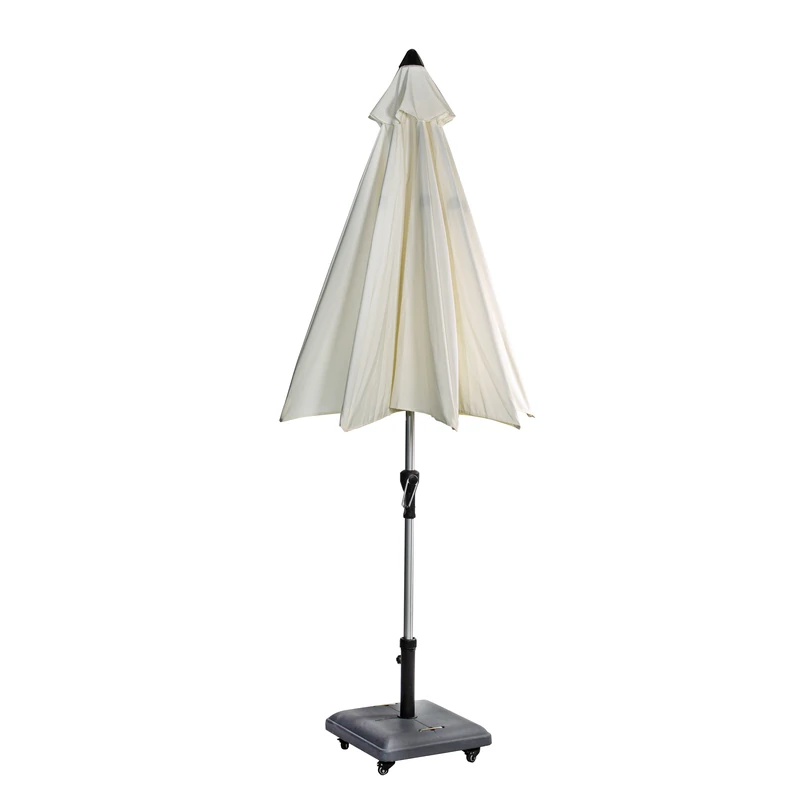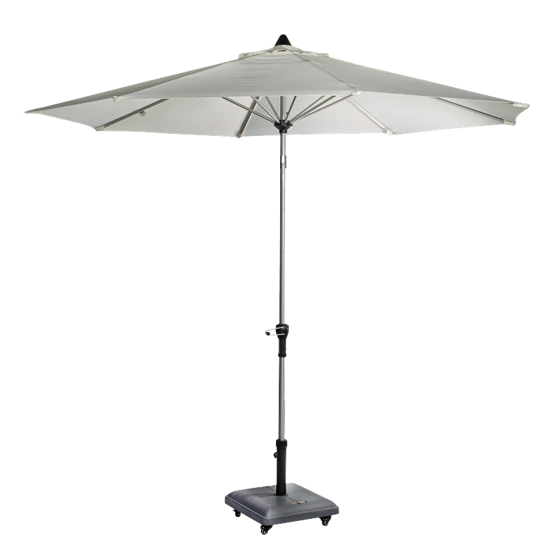שמשייה עגולה מפוארת לגינה בקוטר 3 מטר פתיחה וסגירה ע"י מנואלה, מנגנון להטייה לצדדים השמשיה בצבע שמנת בהיר *לא כולל הבסיס