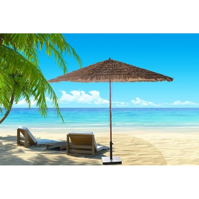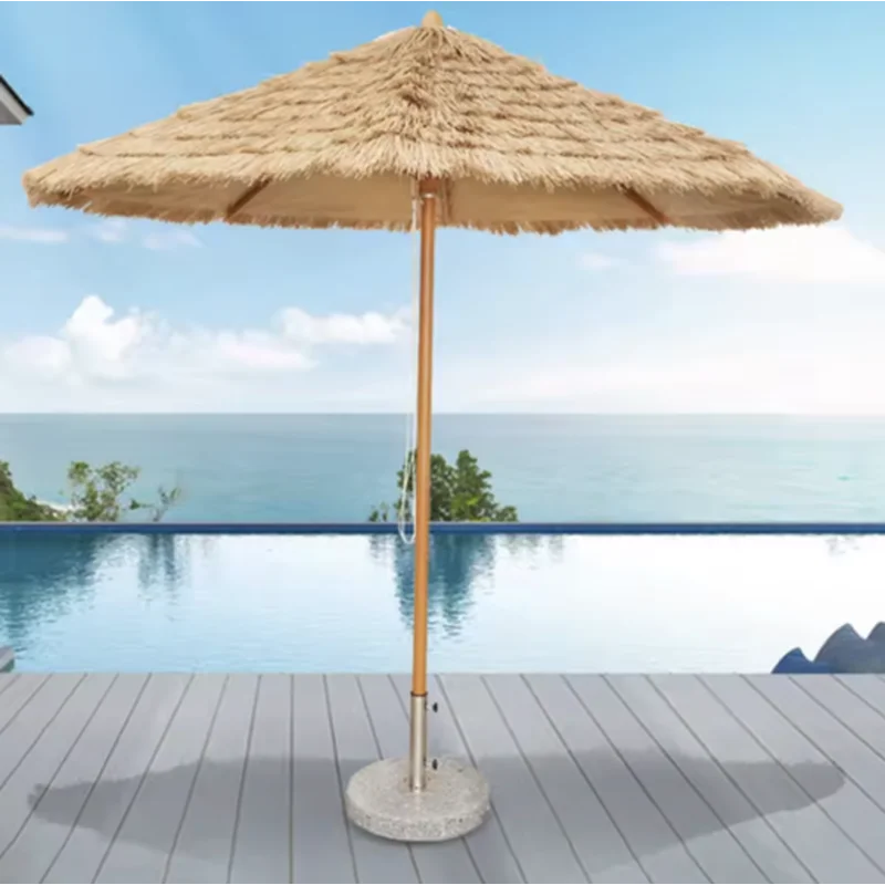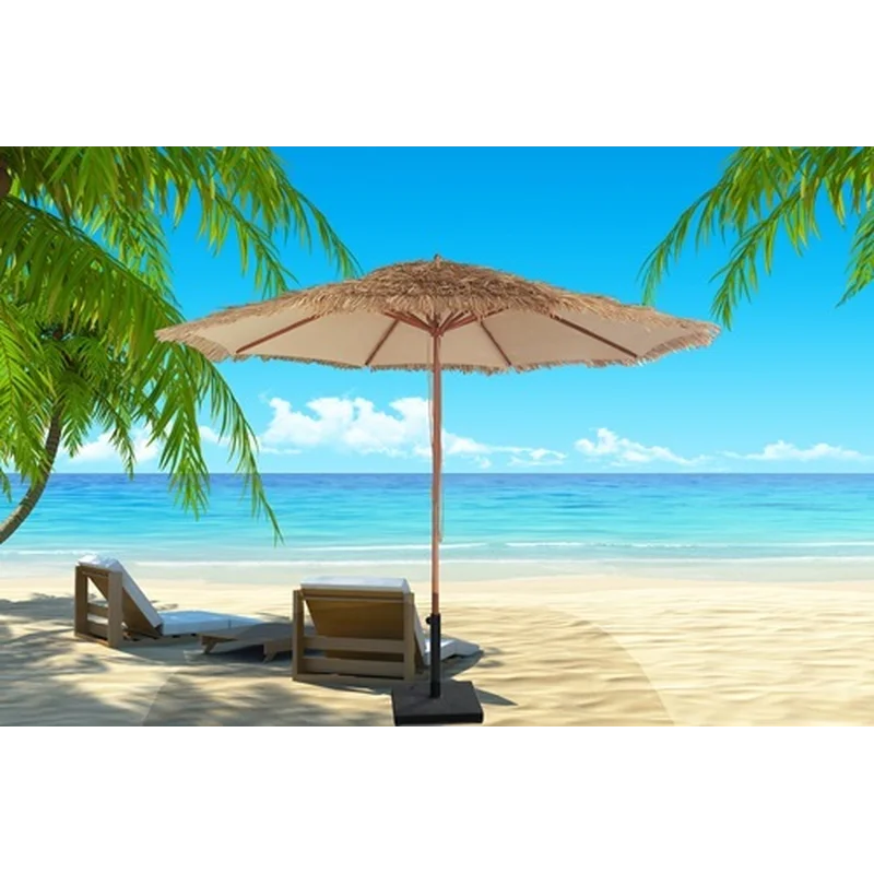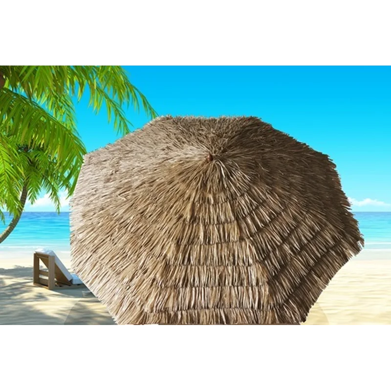 שמשיה בעיצוב קש עגולה – 3 מטר. שמשיית רגל עגולה בעיצוב קש מלאכותי חזקה ואיכותית לימים שמשיים. מתאימה לאנשים שרוצים אווירה של חופשה בחוף הים. בעלת בטנת שמשייה מבד פוליאסטר איכותי. 8 צלעות חזקות לשמשייה.